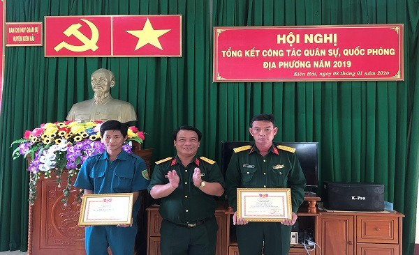 Trong năm 2019, Ban Chỉ huy Quân sự huyện đã tham mưu tốt cho Huyện ủy, UBND huyện tổ chức quán triệt, triển khai các nghị quyết, chỉ thị, kế hoạch thực hiện nhiệm vụ năm 20019. Tình hình an ninh chính trị, trật tự an toàn xã hội tiếp tục ổn định, quốc phòng an ninh được giữ vững và tăng cường, tình hình kinh tế - Văn hoá xã hội tiếp tục phát triển, góp phần nâng cao đời sống, vật chất tinh thần của cán bộ, chiến sỹ lực lượng vũ trang và nhân dân trên địa bàn huyện. Công tác chọn, gọi công nhân nhập ngũ đi vào nề nếp đạt chỉ tiêu 100%. Tổ chức diễn tập chiến đấu trị an tại xã đảo An Sơn đạt khá, đảm bảo an toàn tuyệt đối về người và vũ khí thiết bị. Phối hợp với các trường cấp 2 kiểm tra công tác giáo dục quốc phòng an ninh cho học sinh cấp 3 đúng theo chương trình quy định, kết quả đạt chung khá. Ngoài ra, công tác bảo đảm hậu cần luôn thưc hiện tốt công tác khai thác hậu cần tại chỗ bảo đảm đủ tiêu chuẩn định lượng chế độ ăn cho bộ đội. Tăng gia sản xuất và các hoạt động có thu đạt và vượt kế hoạch năm.