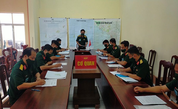 Trong từng giai đoạn luyện tập, Ban chỉ huy và các Ban, từng bộ phận đã vận dụng linh hoạt lý luận vào tình hình thực tế nhằm bảo đảm cho lực lượng vũ trang huyện xử lý hiệu quả, đối phó thắng lợi khi có tình huống xảy ra. Quá trình luyện tập, Đảng ủy - Ban CHQS huyện đã tập trung chỉ đạo tổ chức thực hành nhiều nội dung như: Phối hợp chặt chẽ với các lực lượng nắm bắt tình hình địa bàn, âm mưu thủ đoạn chống phá của địch; tổ chức hội ý chỉ huy, triển khai nhiệm vụ cho các Ban, bộ phận của đơn vị. Đồng thời, cấp ủy, chỉ huy các cấp đã quán triệt và thực hiện nghiêm mệnh lệnh huấn luyện chiến đấu, làm tốt công tác chuẩn bị về văn kiện, vũ khí trang bị, vật chất phương tiện đảm bảo; tổ chức luyện tập sát thực tế; cán bộ, chiến sĩ nắm được thứ tự, tình tự các bước chuyển trạng thái sẵn sàng chiến đấu, thực hành đúng, đủ nội dung các bước.