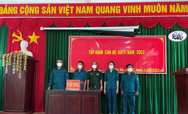 Sau khai giảng các đồng chí bước vào học tập các môn chính trị, kỹ thuật chiến đấu bộ binh, phương pháp huấn luyện, điều lệnh…với nội dung kiến thức lớn cần truyền đạt, thời gian huấn luyện ngắn, cán bộ huấn luyện đã tích cực chủ động, chuẩn bị tốt nội dung lên lớp, làm tốt công tác chuẩn bị vật chất huấn luyện và đảm bảo có phương pháp truyền đạt tốt nhất đến người học. Kết thúc nội dung chính trị, Ban Tổ chức lớp tập huấn cũng đã tổ chức kiểm tra nhận thức chính trị đối với cán bộ DQTV qua quá trình kiểm tra và chấm bài 100% cán bộ DQTV nhận thức tốt đối với nội dung kiểm tra và liên hệ sát thực tiễn nhiệm vụ địa phương.