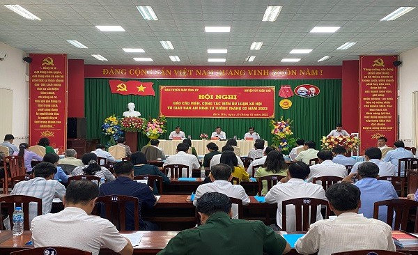 Quang cảnh: Hội nghị báo cáo viên, cộng tác viên dư luận xã hội và giao ban an ninh tư tưởng tháng 02/2023.