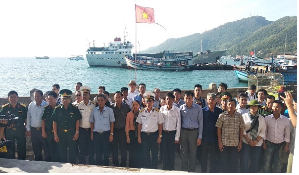 Vừa đặt chân lên đảo, đoàn đến dâng hương tại Đài Tưởng niệm những người dân bị tử nạn trong cơn bão số 5 lịch sử năm 1997. Cơn bão số 5 với sức gió giật cấp 12 đã làm hơn 2.500 tàu cá bị đánh chìm và mất tích, hàng ngàn ngôi nhà của bà con nhân dân bị bão đánh sập gây ra thiệt hại kinh tế hơn 1.500 tỷ đồng. Cơn bão đã cướp đi tính mạng của 460 người dân, làm bị thương gần 340 người khác; để lại niềm tiếc thương vô hạn cho gia đình các nạn nhân, cho quê hương, đất nước.