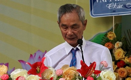 Quang cảnh: ông Nguyễn Kim Thanh ngụ ấp I xã Hòn Tre phát biểu hứa hẹn