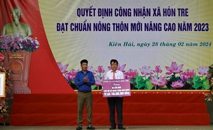 Cũng tại buổi lễ, đại diện Công ty Cổ phần Hòn Tre đã trao bảng biểu trưng tặng 100 triệu đồng cho đại diện UBND xã Hòn Tre để thực hiện công tác an sinh xã hội./.
