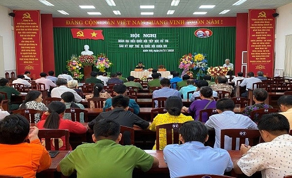 Quang cảnh: Đại biểu Quốc Hội (khóa XIV) đơn vị số 1, tỉnh Kiên Giang, tiếp xúc cử tri tại xã Hòn Tre, huyện Kiên Hải.