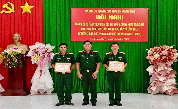 Dịp này Đảng ủy Quân sự huyện Kiên Hải tặng giấy khen cho 02 đảng viên có thành tích tiêu biểu trong 10 năm thực hiện Chỉ thị số 05-CT/TW ngày 15/5/2016 của Bộ Chính trị về đẩy mạnh học tập và làm theo tư tưởng, đạo đức, phong cách Hồ Chí Minh./.