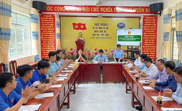 Toàn huyện có 07 Liên đội với 1.391 đội viên, đang sinh hoạt trong 45 chi đội. Đại hội Liên đội, Chi đội tại các trường trên địa bàn huyện đã bầu mới Ban Chấp hành các Liên đội gồm 63 đội viên, Ban Chấp hành các Chi đội gồm 141 đội viên. Chỉ đạo tổ chức hoàn thành Đại hội Liên, Chi đội năm học 2022-2023 đảm bảo theo kế hoạch. Hội đồng đội huyện đã chỉ đạo Liên đội các trường tiếp tục phối hợp với Ban phụ trách, giáo viên chủ nhiệm phát động phong trào thi đua học tập trong tất cả các em đội viên, học sinh nhằm định hướng cho các em ý thức “Vượt khó học tốt”,“Học đều, học đủ, học chăm”, “Học” đi đôi với “Hành”; “Học thực chất - Thi nghiêm túc”. Phát huy hiệu quả các mô hình “Câu lạc bộ học tập”, "Bạn giúp bạn", "Nhóm học tập", "Đôi bạn cùng tiến"…., kết quả có 1.215 bạn giúp bạn, 402 tổ, nhóm học tốt. Chỉ đạo thực hiện tốt phong trào “Bạn giúp bạn – Tiếp sức đến trường”, kết quả đã có 06/06 thiếu nhi bỏ học được vận động trở lại trường. Đồng thời, Hội Đồng đội huyện đã phối hợp với Công an huyện Kiên Hải tổ chức tuyên truyền phòng, chống ma túy trong thanh thiếu niên tại trường THCS&THPT Kiên Hải có 50 em học sinh tham gia.