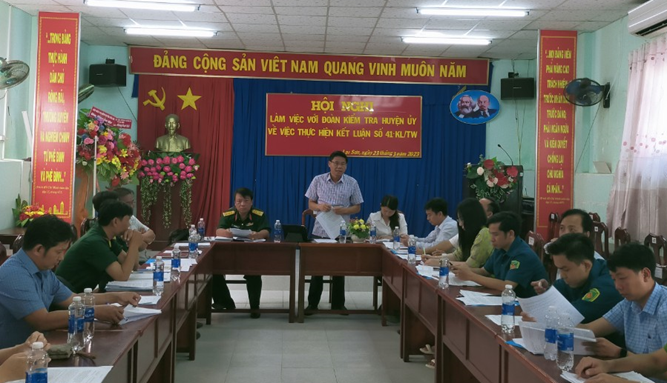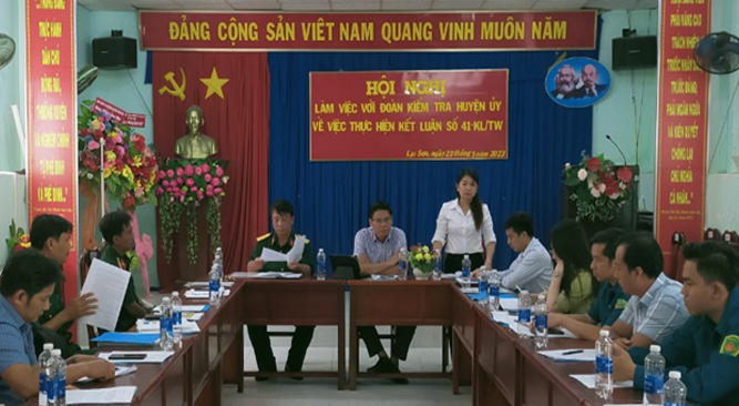Sáng ngày 23/3, Đoàn kiểm tra 615 đã làm việc với Đảng ủy và Chi bộ Quân sự xã Lại Sơn. Chủ trì buổi làm việc Đồng chí Lê Minh Công, Ủy viên Ban Thường vụ - Chủ nhiệm Ủy ban Kiểm tra Huyện ủy, Trưởng đoàn, tham gia cùng với Đoàn còn có đồng chí Thượng tá Phạm Quang Trí, Huyện ủy viên, Chính trị viên Ban Chỉ huy Quân sự huyện, Phó Trưởng đoàn; đồng chí Trần Quốc Chánh, Phó Chủ nhiệm Ủy ban Kiểm tra Huyện ủy, Phó Trưởng đoàn và các thành viên trong Đoàn kiểm tra.