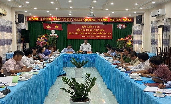 Quang cảnh: Đoàn kiểm tra 711 kiểm tra kết quả thực hiện Nghị quyết 03 của Tỉnh ủy về phát triển du lịch.