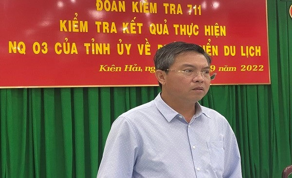 Phát biểu chỉ đạo tại buổi làm việc, đồng chí Nguyễn Lưu Trung, Tỉnh ủy viên, Phó Chủ tịch UBND tỉnh đã ghi nhận và biểu dương những kết quả mà các cấp, các ngành trên địa huyện đã đạt được trong công tác phát triển du lịch trong thời gian qua, đồng thời đồng chí cũng lưu ý Ban Thường vụ Huyện ủy Kiên Hải cần thực hiện tốt hơn nữa một số nhiệm vụ trọng tâm trong thời gian tới đồng chí nói. “Đề nghị các cấp ủy, chính quyền, Mặt trận Tổ quốc và các đoàn thể địa phương huyện Kiên Hải, tiếp tục làm tốt công tác quán triệt, cụ thể hóa, tuyên truyền đến cán bộ, đảng viên và các tầng lớp nhân dân trên địa bàn huyện nội dung Nghị quyết sổ 03-NQ/TU ngày 16-11-2027 của Tỉnh ủy, kế hoạch số 109 của UBND tỉnh và kế hoạch sổ 86-KH/HU của Huyện ủy Kiên Hải về phát triển du lịch huyện định hướng năm 2030. Sau đó, huyện Kiên Hải đẩy mạnh các hoạt động quảng bá, thông qua các hội nghị, hội thảo du lịch, tổ chức các sự kiện, ứng dụng công nghệ thông tin nhằm tuyên truyền, quảng bá hình ảnh du lịch Kiên Hải. Phát triển du lịch, các hoạt động tại khu du lịch địa phương, bảo đảm môi trường du lịch an toàn, chất lượng và thân thiện “địa phương phải làm tốt về công tác xử lý rác thải, bảo vệ môi trường, hệ thống cấp nước sạch đảm bảo các nhu cầu phục vụ du lịch và sinh hoạt trên đảo....”./.