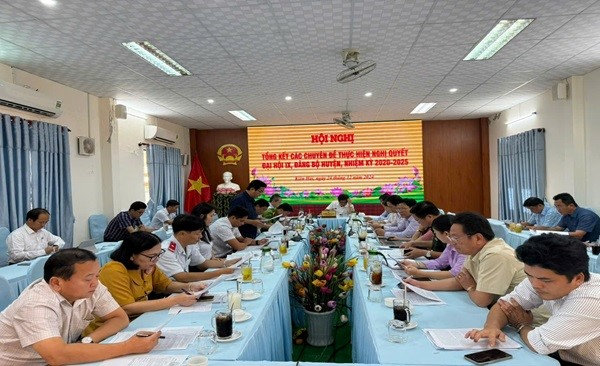 Quang cảnh: Hội nghị tổng kết chuyên đề thực hiện Nghị quyết Đại hội IX, Đảng bộ huyện, nhiệm kỳ 2020 - 2025.