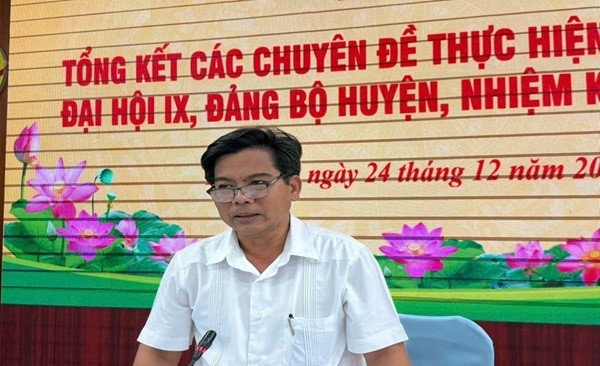 Quang cảnh: Đồng chí Nguyễn Quốc Tuấn, Phó Bí thư Huyện ủy, Chủ tịch UBND huyện Kiên Hải, phát biểu chỉ đạo tại hội nghị.