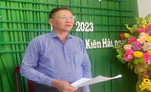 Quang cảnh: Đồng chí Trần Quốc Việt, Bí thư Huyện ủy - Trưởng Ban Chỉ đạo lễ kỷ niệm 40 năm thành lập huyện Kiên Hải phát biểu chỉ đạo Hội nghị