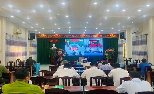 Quang cảnh: Họp thành viên UBND huyện thường kỳ tháng 7 và triển khai nhiệm vụ trọng tâm tháng 8 năm 2024.