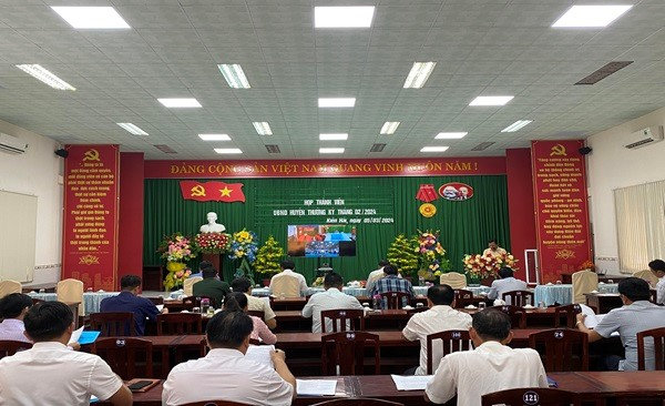 Quang cảnh: Họp thành viên Ủy ban nhân dân huyện thường kỳ tháng 2 và chương trình chỉ đạo tháng 3 năm 2024.