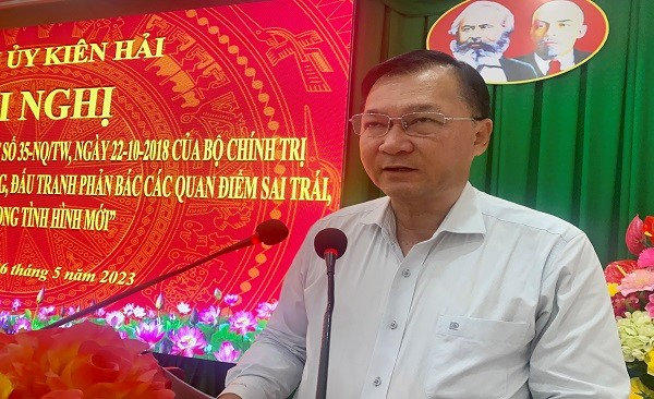 Phát biểu kết luận Hội nghị đồng chí Trần Quốc Việt, Bí thư Huyện ủy Kiên Hải nói: “Phát huy vai trò, trách nhiệm của cấp ủy, người đứng đầu, cơ quan thường trực trong thực hiện Nghị quyết số 35-NQ/TW; Đẩy mạnh tăng cường cung cấp thông tin chính thống, chia sẻ, lan tỏa những tấm gương người tốt, việc tốt, thông tin tích cực, mô hình, cách làm hay, hiệu quả... của các ngành, địa phương, cơ quan, đơn vị; Mỗi cán bộ, đảng viên, công chức, viên chức, đoàn viên, hội viên cần chủ động tuyên truyền rộng rãi trong các tầng lớp Nhân dân trong việc sử dụng mạng xã hội nhằm góp phần tăng cường bảo vệ nền tảng tư tưởng của Đảng, đấu tranh phản bác các quan điểm sai trái, thù địch; Tích cực đổi mới, nâng cao chất lượng, hiệu quả công tác giáo dục lý luận chính trị cho phù hợp với từng đối tượng. Chỉ đạo tham gia tốt Cuộc thi viết chính luận về “bảo vệ nền tảng tư tưởng của Đảng, đấu tranh phản bác các quan điểm sai trái, thù địch trong tình hình mới” do Ban Chỉ đạo 35 Huyện uỷ tổ chức; phối hợp giữa các ngành chủ động nắm tình hình, kịp thời phát hiện, đấu tranh ngăn chặn, xử lý các tổ chức, đối tượng... thông tin thiếu chính xác, tiêu cực, các luận điệu xuyên tạc theo quy định. Thực hiện tốt cơ chế chỉ đạo, vận hành xử lý các thông tin xấu, độc trên mạng xã hội; Quan tâm công tác đối thoại của người đứng đầu cấp ủy, chính quyền các cấp; kịp thời giải quyết những phản ánh, kiến nghị bức xúc của Nhân dân; thực hiện tốt việc công khai, minh bạch, dân chủ trong hoạt động của các cấp ủy đảng, chính quyền, cơ quan, đơn vị”./.