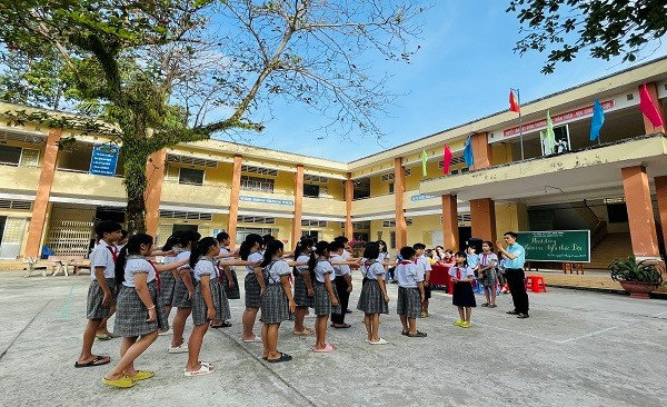 Quang cảnh: Buổi kiểm tra Nghi thức Đội Trường Tiểu học Trần Quốc Toản