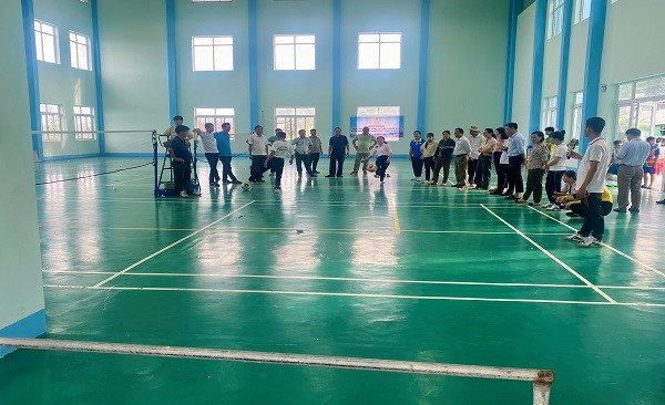Quang cảnh: Các đội tham gia đá bóng vào cầu môn tại Hội thao