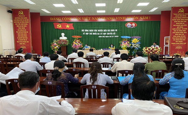 Tại kỳ họp lần này các Đại biểu nghe thường trực Hội đồng nhân dân huyện thông qua Tờ trình số 21/TTr-HĐND ngày 13 tháng 8 năm 2020 của Hội đồng nhân dân huyện về việc giới thiệu nhân sự bổ sung chức danh Chủ tịch Hội đồng nhân dân huyện Kiên Hải khóa VII, nhiệm kỳ 2016-2020. Thư ký thông qua Nghị quyết xác nhận kết quả bầu bổ sung chức danh Chủ tịch HĐND huyện nhiệm kỳ 2016-2020. Đồng thời, Ủy ban nhân dân huyện thông qua Tờ trình số 74/TTr-UBND ngày 14 tháng 8 năm 2020 của Ủy ban nhân dân huyện về việc cho ý kiến các dự án thuộc kế hoạch đầu tư công trung hạn giai đoạn 2021-2025 trên địa bàn huyện Kiên Hải, tỉnh Kiên Giang.