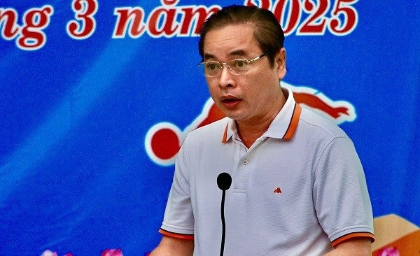 Quang cảnh: đồng chí Lê Minh Trị - Phó Chủ tịch UBND huyện, Trưởng Ban Tổ chức Tháng hoạt động thể dục, thể thao và Ngày chạy Olympic vì sức khỏe toàn dân huyện Kiên Hải năm 2025 phát biểu tại buổi lễ phát động.