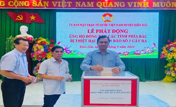 Tại buổi phát động, Trưởng Ban Dân vận, Chủ tịch Ủy ban MTTQ Việt Nam huyện Kiên Hải ông Trần Văn Đoàn, cho biết hưởng ứng lời kêu gọi của Đoàn Chủ tịch Ủy ban Trung ương MTTQ Việt Nam, Ủy ban Mặt trận Tổ quốc Việt Nam tỉnh Kiên Giang, Huyện ủy, HĐND, UBND, Ủy ban MTTQ Việt Nam huyện Kiên Hải kêu gọi các cơ quan, đơn vị, tổ chức, doanh nghiệp, cá nhân trong và ngoài tỉnh, đồng bào ta ở nước ngoài với tình cảm sâu sắc và trách nhiệm, phát huy truyền thống đoàn kết, tinh thần tương thân tương ái, cùng chung tay ủng hộ kinh phí để chia sẻ, ủng hộ nhân dân bị thiệt hại do bão số 3 gây ra…
