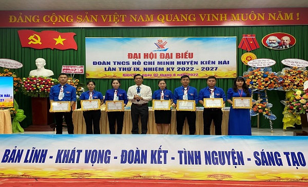 Nhân dịp này, Ban chấp hành Đảng bộ Huyện Kiên Hải đã tặng bức trướng mang dòng chữ: “Bản lĩnh - Khát vọng - Đoàn kết - Tình nguyện - Sáng tạo” cho Đoàn TNCS Hồ Chí Minh huyện Kiên Hải./.