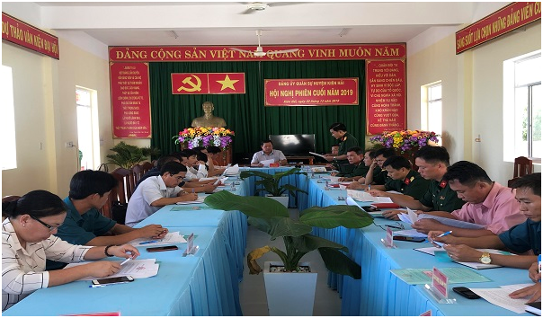 Về phương hướng lãnh đạo thực hiện nhiệm vụ năm 2020, Đảng uỷ Ban Chỉ huy Quân sự huyện đề ra một số nhiệm vụ trọng tâm cần thực hiện như: Tham mưu tốt cho Huyện ủy, UBND huyện lãnh đạo, chỉ đạo thực hiện hiệu quả nhiệm vụ quân sự, quốc phòng. Thẩm định các dự án phát triển kinh tế - xã hội trên địa bàn, gắn phát triển kinh tế với quốc phòng, an ninh trong từng dự án. Tập trung xây dựng các công trình phòng thủ biển đảo. Có 100% cán bộ, đảng viên, hạ sĩ quan, binh sĩ tham gia quán triệt, học tập các nghị quyết, chỉ thị, quy định cấp trên. Giữ vững tỷ lệ đảng viên trong lực lượng dự bị động viên đạt 16,57%. Huấn luyện quân sự, giáo dục chính trị, phổ biến giáo dục pháp luật đúng, đủ nội dung, chương trình, thời gian, quân số lực lượng thường trực đạt 100%, lực lượng dự bị động viên đạt 98%, dân quân tự vệ đạt 85% trở lên. Kết quả kiểm tra 100% đạt yêu cầu, có 75%, khá, giỏi trở lên. Thực hiện tốt công tác tuyển, chọn và gọi công dân nhập ngũ năm 2020 đạt 100%, phải có đảng viên nhập ngũ tham gia xây dựng quân đội. Bồi dưỡng kiến thức quốc phòng và an ninh đạt 100% chỉ tiêu. Hoàn thành biên soạn lịch sử lực lượng vũ trang huyện Kiên Hải giai đoạn 1945 - 2015, tổ chức các hoạt động “Tết Quân - Dân năm 2021” tại xã An Sơn. Ngoài ra, đảm bảo 100% cơ quan, đơn vị có khu tăng gia sản xuất tập trung, phấn đấu lợi nhuận tăng gia sản xuất và có hoạt động thu trên 5.000.000đ/người/năm, nâng cao đời sống bộ đội, đảm bảo quân số khỏe 98,5% trở lên. Phấn đấu xây dựng Đảng bộ đạt trong sạch vững mạnh, 1/3 chi bộ đạt trong sạch vững mạnh. Trong đó, có trên 90% đảng viên hoàn thành tốt và hoàn thành xuất sắc nhiệm vụ.