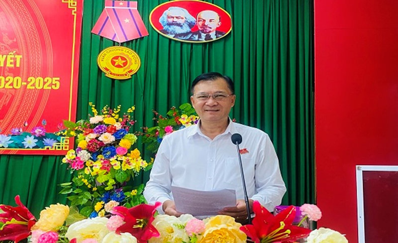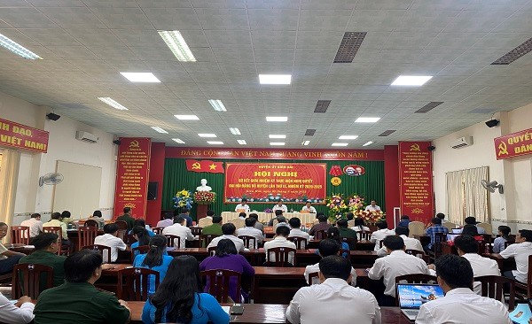 Quang cảnh: Hội nghị sơ kết giữa nhiệm kỳ thực hiện Nghị quyết Đại hội Đảng bộ huyện lần thứ IX, nhiệm kỳ 2020-2025.