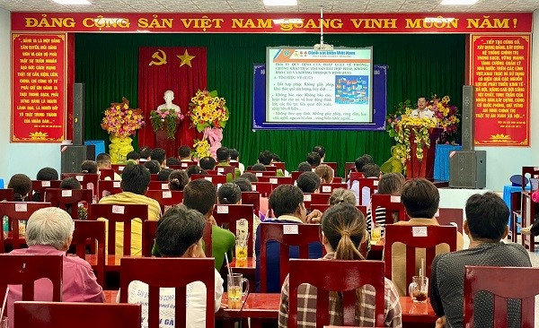 Quang cảnh: Hội nghị tuyên truyền, phổ biến pháp luật về chống khai thác hải sản bất hợp pháp, không báo cáo, không theo quy định (IUU) trên địa bàn xã Hòn Tre