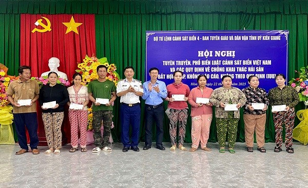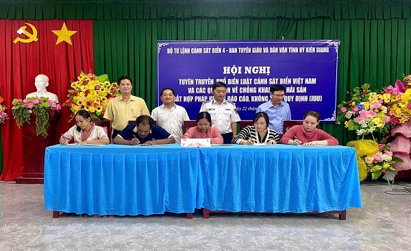 Tại hội nghị, bà con ngư dân trên địa bàn xã Hòn Tre đã được các tuyên truyền viên của Bộ Tư lệnh Vùng Cảnh sát biển 4 phổ biến các nội dung cơ bản về Luật Cảnh sát biển Việt Nam; Một số quy định của Pháp luật Việt nam và quốc tế liên quan đến hoạt động đánh bắt hải sản trên biển; một số quy định Luật Thủy sản năm 2017; các Nghị định về chống khai thác IUU và tuyên truyền một số hành vi bị truy cứu trách nhiệm hình sự liên quan đến khai thác, mua bán, vận chuyển trái phép thủy sản. Bên cạnh đó, bà con ngư dân được xem phóng sự “Quyết liệt chống khai thác IUU” và tuyền truyền một số giải pháp của Cảnh sát biển Việt Nam nhằm ngăn chặn tình trạng ngư dân vi phạm vùng biển nước ngoài đánh bắt hải sản. Đồng thời, qua tuyên truyền của Bộ Tư lệnh Vùng cảnh sát biển 4, các ngư dân đã ký cam kết không vi phạm IUU trong khai thác, đánh bắt thủy, hải sản.