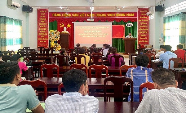 Tham gia lớp học có 40 học viên là Đại biểu Hội đồng nhân dân xã không giữ chức vụ, cán bộ, công chức, viên chức, cán bộ không chuyên trách, giáo viên các xã; Trưởng, Phó ban nhân dân ấp; Trưởng, Phó các đoàn thể ấp; Tổ trưởng và tổ phó tổ nhân dân tự quản; Đảng viên không giữ chức vụ không thuộc đối tượng 3. Trong thời gian 4 ngày, các học viên sẽ được tiếp thu 9 chuyên đề gồm những nội dung cơ bản về: Đường lối, quan điểm của Đảng Cộng sản, chính sách, pháp luật của Nhà nước Việt Nam về quốc phòng, an ninh, về phát triển kinh tế- xã hội gắn với tăng cường, củng cố quốc phòng, an ninh và hoạt động đối ngoại trong tình hình mới, về bảo vệ an ninh chính trị, kinh tế, văn hóa, tư tưởng và Phong trào toàn dân bảo vệ an ninh Tổ quốc, về dân tộc, tôn giáo gắn với quốc phòng, an ninh trong tình hình mới; Phòng, chống chiến lược “diễn biến hòa bình”, bạo loạn lật đổ của các thế lực thù địch đối với Việt Nam; Biên giới quốc gia và bảo vệ chủ quyền biên giới quốc gia; quản lý và bảo vệ chủ quyền biển, đảo Việt Nam trong tình hình mới; Phòng, chống vi phạm pháp luật trên không gian mạng; Xây dựng, quản lý lực lượng Dân quân tự vệ, Dự bị động viên trong tình hình mới và những nội dung cơ bản của các Luật có liên quan về quốc phòng, an ninh.
