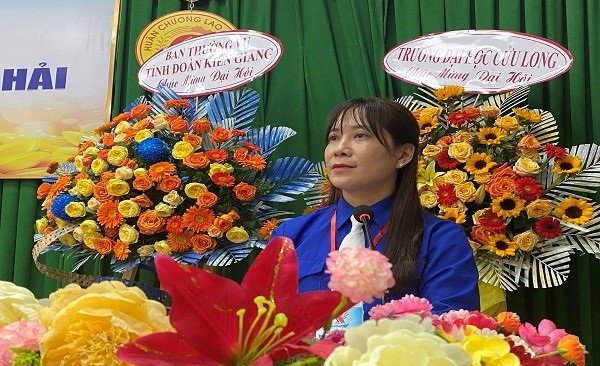 Quang cảnh: Đ/c Lê Kim Thùy, Bí thư Đoàn TNCS Hồ Chí Minh, lần thứ VIII, nhiệm kỳ 2017-2022, phát biểu khai mạc.