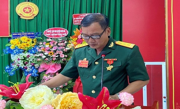 Quang cảnh: Đồng chí Vũ Văn Hận, Chủ tịch Hội Cựu chiến binh huyện Kiên Hải lần thứ V, nhiệm kỳ 2017-2022, phát biểu khai mạc.