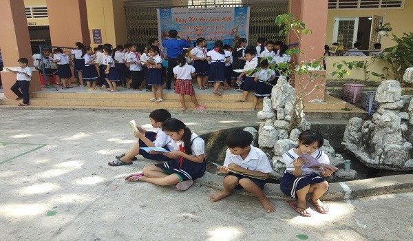Quang cảnh: Các em học sinh tham gia đọc sách tại Trường Tiểu học Trần Quốc Toản xã Lại Sơn huyện Kiên Hải.