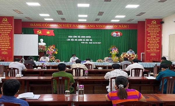 Quang cảnh: Buổi làm việc với UBND xã Hòn Tre về tình hình phát triển - xã hội 8 tháng đầu năm 2021.