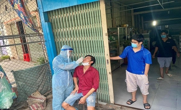 Quang cảnh: lấy mẫu xét nghiệm sàn lọc lần 03 cho người dân trên địa bàn xã.