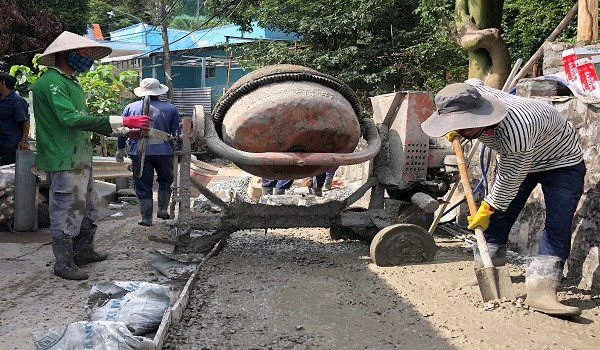 Quang cảnh: Thi công nâng cấp, mở rộng mặt đường lộ giao thông trên địa bàn xã Hòn Tre