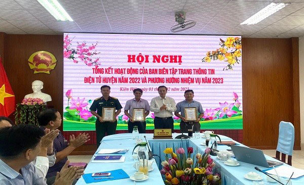 Dịp này, Ban Biên tập website huyện Kiên Hải tặng biểu dương cho 03 cá nhân có thành tích trong tham gia, xây dựng Trang Thông tin điện tử huyện Kiên Hải năm 2022./.