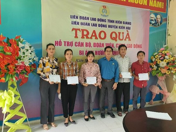 Ban Thường vụ Liên đoàn Lao động huyện Kiên Hải đã kịp thời triển khai đến các Công đoàn cơ sở trực thuộc, chỉ đạo rà soát đoàn viên bị ảnh hưởng để kịp thời đề xuất hỗ trợ, qua đó đã thăm hỗ trợ 7 chốt kiểm tra phòng chống dịch trên địa bàn huyện, số tiền 7 triệu đồng; hỗ trợ 92 đoàn viên F0, F1, F2, số tiền trên 73 triệu đồng,các Công đoàn cơ sở hỗ trợ 79 suất; số tiền trên 118 triệu đồng. Phát động vận động ủng hộ quỹ "Mái ấm Công đoàn" được 352 triệu đồng, đồng thời đã tổ chức hỗ trợ sửa chữa và cất mới được 10 căn nhà, trị giá trên 360 triệu đồng cho đoàn viên có hoàn cảnh khó khăn về nhà ở. Phối hợp chính quyền tổ chức thăm hỏi tặng quà nhân kỷ niệm các ngày lễ, tết cho đoàn viên và người lao động có hoàn cảnh khó khăn được 7.025 đoàn viên, số tiền 1,7 tỷ đồng. Tham gia tốt các nguồn quỹ như: Đền ơn đáp nghĩa là 196 triệu đồng, quỹ phòng chống Covid trên 197 triệu đồng và 109 tin nhắn gửi đến tổng đài; quỹ miền trung lũ lụt 78 triệu đồng, quỹ vì người nghèo 393 triệu đồng.