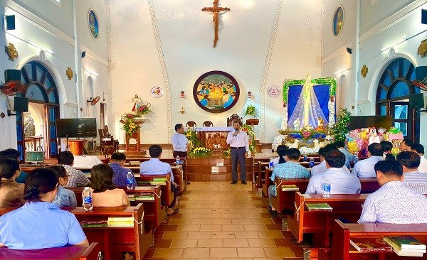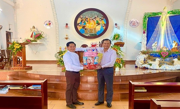 Quang cảnh: Đoàn lãnh đạo huyện Kiên Hải thăm chúc mừng Giáo họ Hòn Tre nhân dịp Lễ Giáng sinh năm 2024.