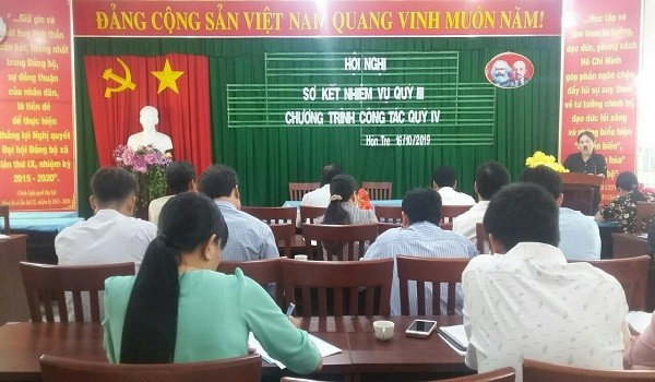Quang cảnh: Đảng ủy xã Hòn Tre, hội nghị sơ kết nhiệm vụ quý III và chương trình công tác quý IV năm 2019